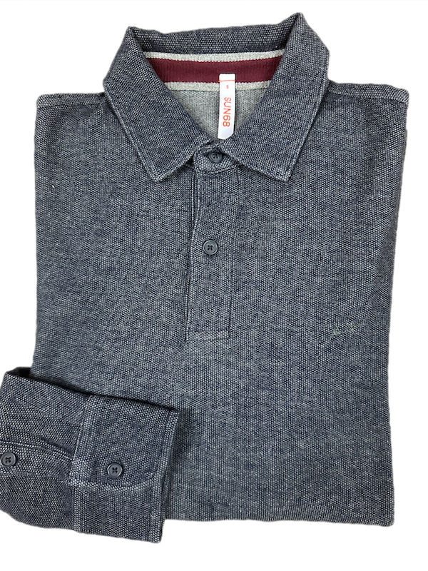 SOLO TG. S - SUN68 Polo - Polo Manica Lunga Blu Tessuto Lavorato